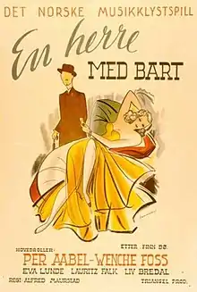 En herre med bart (English: A Gentleman with a Moustache) is a 1942 Norwegian comedy film directed by Alfred Maurstad, based on a play by Finn Bø, and starring Per Aabel and Wenche Foss. Attorney Ole Grong (Aabel) and his wife Cecilie (Foss) are having marital difficulties. After they decide on a divorce, they both go away to recuperate and, when they happen to check in at the same hotel, complications ensue.