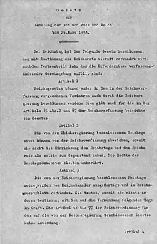 Gesetz zur Behebung der Not von Volk und Reich Law to Remedy the Distress of the People and the Reich