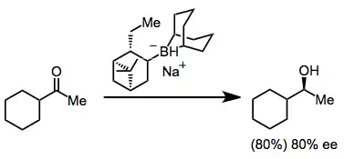 Chirally modified borohydrides are also useful for enantioselective ketone reductions. Economical ligands derived from amino acids have been used to modify borohydrides, affording highly selective reducing agents.[7]