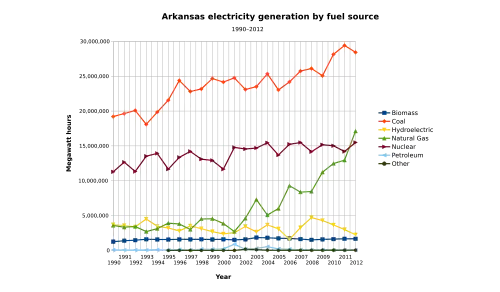 - ↑ "Arkansas Electricity Generation". U.S. Department of Energy. Archived from the original on March 23, 2014. Retrieved March 22, 2014.