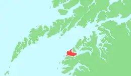 Engeløya is an island in the northern part of Steigen Municipality in Nordland county, Norway. The island has an area of 69 square kilometres (27 sq mi). The highest point on the island is the 649-metre (2,129 ft) Trohornet mountain. The rocky, mountainous island has grassy slopes that are fertile and it has some of the better farmland in the municipality. The island sits in the entrance to the Sagfjorden, just south of the island of Lundøya.[1]