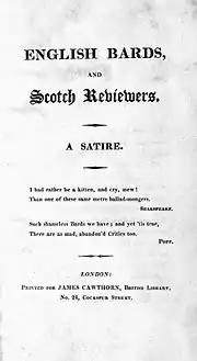 English Bards and Scotch Reviewers is an 1809 satirical poem written by Lord Byron, and published by James Cawthorn in London.