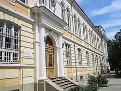 English Language School "Geo Milev" offers a historical tradition of excellence in preparing young students in foreign language studies since the beginning of the 20th century. The building was constructed in 1908 by the Italian architect professor Mariano Pernigoni for the purposes of the French Catholic School with a boarding house „Notre dame de sion“.[6] The aims of the school, managed by the religious order of Notre Dame de Sion, with divisions in 24 countries around the world, were solid education, proper behavior and forming a character in the spirit of the Christian virtues. Teachers at the French Catholic School were Catholic nuns. The education of the girls was carried out in French and organized into small classes with up to 10 students, but varied in ethnic and multicultural composition – besides wealthy Bulgarians, there were also Jews, Turks, Armenians, Czechs, Austrians, and Belgian students. With the Bulgarian coup d'état of 1944, the country entered the Soviet sphere of influence and the school was closed down until 1963, when it resumed its activities as the nowadays known English Language School „Geo Milev“. At present, the high school admits students in 4 classes with intensive studies of English and a second foreign language - French, German or Russian.