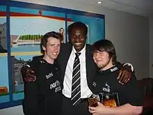 ![]() Eni (centre) with a pair of fans | |||||||||||||||||||||||||||||||||||||||||