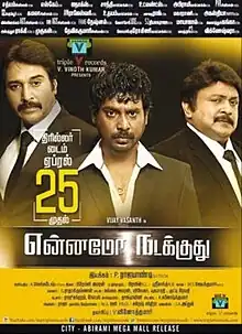 Ennamo Nadakkudhu (transl. Something is happening) is a 2014 Indian Tamil-language action thriller film written and directed by P Rajapandi. It stars Vijay Vasanth, Mahima Nambiar, Prabhu, Rahman, Saranya Ponvannan, and Sukanya.[1] Produced by Vijay Vasanth's brother, V Vinoth Kumar for Triple V Records,[2] it has music composed by Premgi Amaren and cinematography by A. Venkatesh, while the editing is taken care of by Praveen K. L. and N. B. Srikanth.[3] The story revolves around a young man in love, who gets caught between two influential people in the society.[4]