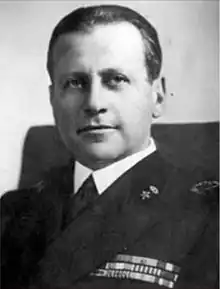 In 1930 he married Miss Nerina Varvaro and attended the naval warfare school, at the end of which he returned to sea as commander of the destroyer Emanuele Pessagno and then of the 5th Torped Boat Squadron, with flag on Giuseppe Cesare Abba. He was then transferred to the office of the Chief of Staff of the Navy and in 1934 he was promoted to captain, taking command of the heavy cruiser Zara from 16 September 1934 to 14 August 1935. At the outbreak of the Second Italo-Ethiopian War he was once again sent to the Red Sea, where he helped with the logistics organization, and then took command of the torpedo boat group based in Massawa. He was part of the retinue of Princess Yolanda of Savoy when she made a visit to Eritrea and the Indian Ocean on the hospital ship Cesarea. In late 1938 he was sent to Spain as commander of the Italian naval mission, set up at the outbreak of the Spanish Civil War, which had the dual purpose of supporting the Corpo Truppe Volontarie and acting as a liaison with the Nationalist Navy of Generalissimo Francisco Franco. He fought personally in the battle of Catalonia, and was among the first to enter Barcelona in January 1939, earning another Silver Medal of Military Valor. As the war was ending in favor of the Nationalists, he performed diplomatic tasks by forging ties between the two countries, and after the war he was promoted to rear admiral and became naval attaché at the Italian Embassy in Madrid.[1][2]