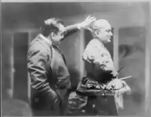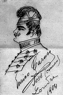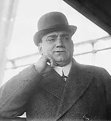 Caruso's success in the Metropolitan Opera drew the attention of Black Hand extortionists.[17] They threatened to injure his throat with lye or harm him and his family if he did not pay them money.[18] He initially paid their extortion fee of $2,000 (US$61,000 in 2022[19]) expecting the matter to be settled, but his willingness to pay made them more brazen. They subsequently demanded an even larger sum of $15,000 (US$455,000 in 2022[19])."[20] He was aided by New York City police detective Joseph Petrosino[21] who, impersonating Caruso, captured the extortionists.[22] Two Italian men, Antonio Misiano and Antonio Cincotto, would be later specifically accused of the crime.[23][24]