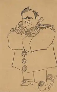 A fastidious dresser, Caruso took at least two baths a day and enjoyed good food and convivial company. He forged a particularly close bond with his Met and Covent Garden colleague Antonio Scotti – an amiable and stylish baritone from Naples. Caruso was superstitious and habitually carried several good-luck charms with him when he sang. He played cards for relaxation and sketched friends, other singers, and musicians. His wife, Dorothy, said that by the time she knew him, her husband's favourite hobby was compiling scrapbooks. He also amassed valuable collections of rare postage stamps, coins, watches and antique snuffboxes. Caruso was a heavy smoker of strong Egyptian cigarettes. This deleterious habit, combined with a lack of exercise and the punishing schedule of performances that Caruso willingly undertook season after season at the Met, may have contributed to the persistent ill-health which afflicted the last year of his life.[33][34][35]