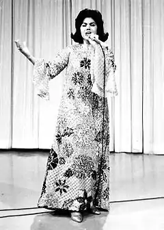La Prieta Linda, who owed her stage name to the famous comedian Clavillazo, debuted as a singer with Silvestre Vargas's mariachi.[3] In 1950, her elder sister Flor Silvestre, who had already signed with Columbia Records' Mexican branch, invited her to form a duet named Las Flores; they recorded two songs—"Los desvelados"[4] and "Lo traigo en la sangre"[5] (with Rubén Fuentes' mariachi)—for Columbia. In 1952, La Prieta Linda recorded her first hit, "Quieto, capulín", for Columbia. Later, with the help of singer and actress Lola Beltrán, La Prieta Linda had her own radio programs and signed a contract with Peerless Records (Beltrán's record label). She made most of her 1950s recordings for Peerless, including some collaborations with Beltrán, David Záizar, and Juan Záizar. She appeared in her first film in the late 1950s. In the 1960s, she signed with RCA Víctor and recorded new hits such as "Mil cadenas" and "Al ver". In 1979, she won the first Ranchera Music Festival with the song "Amantes de una noche".[3] Over the years Jiménez recorded over 40 albums and made various tours across Mexico and other countries.[3] In her acting career, her comic role in the film Valente Quintero was highly notable since she gave a performance without singing.[3]