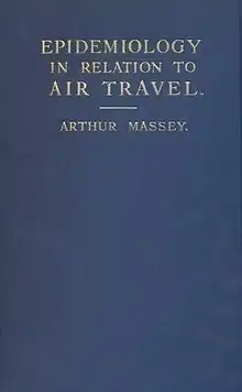Epidemiology in Relation to Air Travel was written by the Coventry-based medical officer of health Arthur Massey, and published by H. K. Lewis and Co. Ltd. in 1933, when the topic was relatively new,[1] and in the year after the International Sanitary Convention for Aerial Navigation was drawn up.[2] It has 59 pages and five maps.[1]
