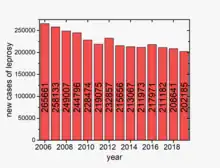 - ↑ "New case detection trends in leprosy" (PDF). WHO. Archived from the original (PDF) on 2020-09-15.