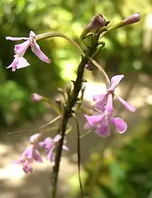 - ↑ page 251 of Leonardo P. Felix and Marcelo Guerra: "Variation in chromosome number and the basic number of subfamily Epidendroideae (Orchidaceae)" Botanical Journal of the Linnean Society 163(2010)234-278. The Linnean Society of London. downloaded October 2010 from http://onlinelibrary.wiley.com/doi/10.1111/j.1095-8339.2010.01059.x/pdf