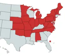USA: D.C., Alabama, Alaska, Arkansas, Indiana, Illinois, Iowa, Kansas, Maine, Maryland, Michigan, Massachusetts, Minnesota, Missouri, Nebraska, New Hampshire, New Jersey, New York, North Carolina, Ohio, Oklahoma, Pennsylvania, Tennessee, Vermont, Virginia, West Virginia, Wisconsin.