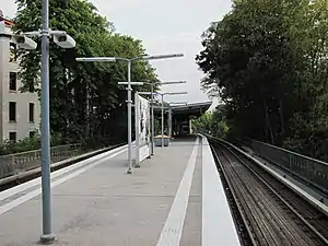 Eppendorfer Baum is a rapid transit station on the Hamburg U-Bahn line U3. The station was opened in May 1912 and is located in the Hamburg district of Harvestehude, Germany. Harvestehude is part of the Hamburg borough of Eimsbüttel.