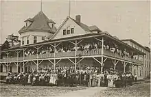 An agreement between The Citizen's Development Company of Ludington, The Flint and Pere Marquette Railroad, and The Epworth Training Assembly, was signed on May 6 of that year. By mid-July, a mere ten weeks later, the Hotel, Auditorium and classrooms that had been hastily built were ready for the first session, July 18 to August 5. Families camped in tents on the sandy beaches and enjoyed the programming as well as the lakeside vistas.[4]