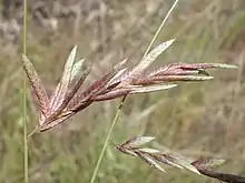 Eragrostis brownii is a widespread species of grass known as Browns lovegrass. Found in Australia and New Zealand, it may be seen growing in woodland or pasture. The grass may grow up to .6 m (2 ft 0 in) tall. The specific epithet brownii is named in honour of the Scottish botanist Robert Brown.[1][2][3][4]