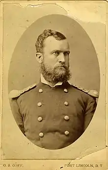 Following the Battle of Little Bighorn, Gilbreath and H Company were ordered to the Dakota territory on August 8, 1876. They made camp at Yankton, South Dakota to await the rest of the Regiment, which was now under the command of Lieutenant Colonel George Buell. H Company was detached to Fort Yates, where the Sioux tribe had become very active.[52]