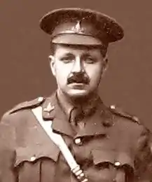 Darwin was commissioned as a Second Lieutenant in the 4th Battalion of the Green Howards (Alexandra Princess of Wales's Own Yorkshire Regiment), a Territorial Army infantry unit, in September 1914,[11] shortly after the outbreak of the war in August. After the Regular Army was basically wiped out at the end of 1914, the Territorials had to replace them. The Green Howards joined the British Expeditionary Force in Belgium and France on the Western Front as part of the Northumbrian Division, on 17 April 1915. Casualty rates in the trenches among junior officers were exceptionally high, especially amongst those without any combat experience – on average, junior officers were killed or wounded after six weeks fighting.[12] Darwin only survived one. He was shot and killed on 24 April during the Battle of St Julien, part of Second Battle of Ypres. He, along with a close colleague Captain John Nancarrow[10] were reportedly "buried in one grave, with a little cross over it, by a farmhouse near St Julien."[9] He was 33 years old and unmarried.[1]
