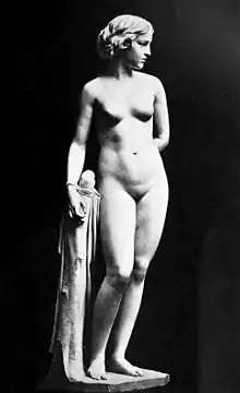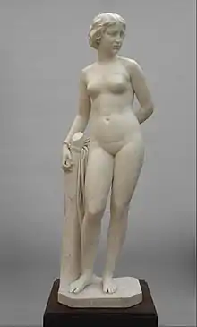 By 1849, Palmer had relocated to Albany with his family and had transitioned from cameo-cutting to large-scale sculpture.[2] He worked in a primarily neoclassical style. Palmer mounted an exhibition of twelve of his sculptures, known as "the Palmer Marbles," at the National Academy of Design in 1856, aiding his rise to prominence.[3] His major works include The White Captive (1858) in the permanent collection of the Metropolitan Museum of Art, New York, Peace in Bondage (1863), Angel at the Sepulchre (1865), in Albany, New York, a bronze statue of Chancellor Robert R. Livingston (1874), in Statuary Hall, Capitol, Washington, D.C., and many portrait busts. Palmer died at his home in Albany on March 9, 1904, and is buried in Albany Rural Cemetery.[4][5][6]
