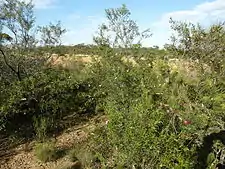 Turpentine bush is widespread and common in the Eremaean and South-West botanical provinces in Western Australia where it grows in sand or clay soils.[3][8] It is also found in the extreme south west of the Northern Territory where it is classified as "near threatened"[9] and in South Australia. Its occurrence in that state was first recorded in 1977.[10]