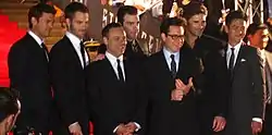 Bana's next project was the historical drama The Other Boleyn Girl (2008). In this feature, he played Henry VIII of England opposite Scarlett Johansson and Natalie Portman. Bana was surprised to be offered the role and admitted that he "probably would have just passed it on without even opening it" if it had been presented to him under a different title.[36] The following year, he co-starred with Chris Pine and Zachary Quinto in the science fiction film Star Trek. In the film, Bana played Nero, a Romulan mining ship captain who attempts to exact revenge on Spock, whom he blames for the destruction of his homeworld and its inhabitants. To prepare for the role, Bana shaved his head, and donned face tattoos; director J. J. Abrams was impressed with his villainous appearance.[37] The film was positively received,[38] and grossed over US$380 million worldwide.[39] Bana later recalled, "It was an unbelievable experience, and it's such a great group of actors", but he did not reprise his role in the 2013 sequel, saying "It was just a one-time for me."[40]