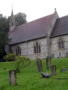 Robinson settled in the village of Langrish, near Petersfield in east Hampshire. He died peacefully at Haslar Naval Hospital, Gosport, on 20 August 1965 and was laid to rest at St John's, the village church he had served for 20 years as warden.[14] For unknown reasons, his grave was without a headstone until 1998, although a large plaque to him was dedicated by his sister in 1969 and surmounts the altar. Following investigations by the Naval VC Association, his grave was discovered and a Commonwealth War Graves Commission headstone erected.[16] At the dedication ceremony, attended by over 150 friends, relatives, Masons and servicemen, Admiral Derek Reffell gave the eulogy which stated: "The admiral was a hero, but more importantly he was a naval man from the finest mould. Now at last we can accord him the dignity he deserves."[14]