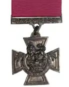 - ↑ "No. 21846". The London Gazette. 5 February 1856. pp. 410–411. Original warrant, Clause Two: Secondly. It is ordained that the Cross shall be suspended from the left breast by a blue riband for the Navy, and by a red riband for the Army