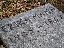 Mann died in Zürich on 27 August 1969 from a brain tumour[1] and is buried at Friedhof Kilchberg in Zürich, also the site of her parents' graves.[17][18] She was 63.