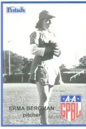 Born in St. Louis, Missouri, Erma Bergmann was one of three children into the family of Otto and Sophie Bergmann. Her father was a packinghouse butcher, while her mother, a ragtime pianist, wanted her only daughter to take piano lessons. But Erma declined, preferring to play sandlot ball with her two brothers and other neighborhood kids. At fourteen, she began playing at third base in the St. Louis Amateur Softball League since other opportunities at school were limited. At fifteen, she played shortstop for the Melbas, a girls' softball team at St. Louis Park, and pitched for the Phantoms, a boys' baseball team, pitching ten straight victories.[3] After eight years of experience, she was recruited by an AAGPBL scout that followed her for three years before signing a contract to play after graduation.[4]