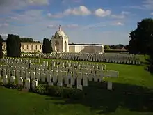 As part of the 36th (Ulster) Division, Seaman's battalion was engaged in the Fifth Battle of Ypres, a battle of the Hundred Days Offensive, on 29 September 1918. It was tasked with the capture of Terhand. After initial good progress, the battalion was held up by German machine-gun posts. Seaman, a lance corporal operating a Lewis gun, played a key role in getting the advance restarted although he was killed in the process. Afterwards, his bravery was recognised with a posthumous award of the Victoria Cross (VC).[3] The VC, instituted in 1856, was the highest award for valour that could be bestowed on a soldier of the British Empire.[4] The citation for his VC read: