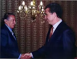 Although Zedillo's policies eventually led to a relative economic recovery, popular discontent with seven decades of PRI rule led to the party losing, for the first time, its legislative majority in the 1997 midterm elections,[9] and in the 2000 general election the right-wing opposition National Action Party's candidate Vicente Fox won the Presidency of the Republic, putting an end to 71 years of uninterrupted PRI rule.[10] Zedillo's admission of the PRI's defeat and his peaceful handing of power to his successor improved his image in the final months of his administration, and he left office with an approval rating of 60%.[11]