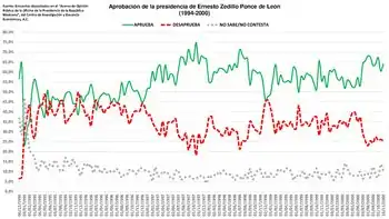 - ↑ Aznarez, Juan Jesus (1 December 2000). "Zedillo abandona la presidencia con una popularidad del 60%". El Pais. Retrieved 9 August 2019.
