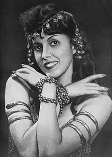 In 1929, Volúsia made her first presentation at Theatro Municipal, dancing samba barefooted.[4] She would make another presentations in the following years, invited by cultural salonists like Paschoal Carlos Magno.[5] In the spirit of Brazilian modernism Volúsia researched Amerindian and African dances in order to create a "national dance" (bailado nacional).