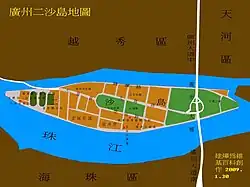 Ersha Island, formerly Napier Island in English, is an island in the Yuexiu District of Guangzhou, Guangdong Province, China. It houses the American International School of Guangzhou elementary school campus, several apartment complexes, a badminton stadium, and a government sports training facility. Ersha Island is also home to the Guangdong Museum of Art and the Xinghai Concert Hall. It also contains several small parks: Chuanqi, Hong Cheng, Ershadao Sports Park, and Guangzhou Fazhan Park.