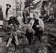 Stresemann married Elisabeth Deninger, sister of his expedition-mate Karl Deninger, in 1916. She was the daughter of chemist Albert Deninger, known for his work on fluoride toothpastes. They divorced in 1939. Stresemann married Vesta née Grote (who was widowed after her husband Friedrich Hauchecorne (1894 – 1938), director of the Halle zoo, was killed in a hunting accident) during the war years in 1941 and they worked on many ornithological papers, especially on moult, and she survived him to live to 103 years.[18] Stresemann was known for his impeccable sense of dressing, his affable personality and excellent dancing in his youth. He was an excellent speaker, carefully adding wit and humour, and proud of the German language despite knowing excellent English. At the Ornithological Congress at Oxford in 1934 he intentionally gave a one-hour presidential speech in German. His German pride was always tempered by his meticulousness and when surprise was expressed after turkey frescoes were found in the Schleswig Cathedral during restoration Stresemann carefully examined the evidence to see if indeed the pictures were made in the 13th century. It however turned out that the frescoes were added by Hanover artist August Olbers who confessed adding them when restoring damage in 1890.[2]