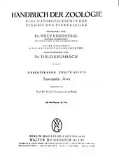 - 1 2 Haffer, Juergen (1994-06-01). "The genesis of Erwin Stresemann's Aves (1927–1934) in the Handbuch der Zoologie, and his contribution to the evolutionary synthesis". Archives of Natural History. 21 (2): 201–216. doi:10.3366/anh.1994.21.2.201. ISSN 0260-9541.