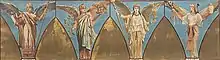 In 1882, Lefuel's successor Edmond Guillaume started making plans for the completion of the staircase. A team of Italian specialists created colorful mosaics for the vaulted ceilings, representing Victories holding palms and portraits of illustrious figures,[2][10] on a design by painter Jules-Eugène Lenepveu.[1]: 107 [11]