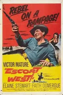Escort West is a 1959 American Western film directed by Francis D. Lyon, and starring Victor Mature, Faith Domergue, and Elaine Stewart. The movie is set after the U.S. Civil War, when a former Confederate officer, played by Victor Mature, and his daughter help some survivors of an Indian massacre. The film was released by United Artists on January 23, 1959.