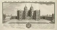 Spicer pulled down the house and used the material to build another, designed by Edward Lapidge,[3] on a more elevated site. The new house was stuccoed, in imitation of stone, with Ionic porticoes on north and south fronts, and semi-circular wings.[4] In the late 1890s, this building was then incorporated as a wing into the current French Renaissance style house on the site, designed by G.T. Robinson and Achille Duchêne at the behest of Edgar Vincent, later 1st Lord D'Abernon. Vincent had purchased the much-reduced estate in 1895 from Money Wigram, who had bought it from the Spicer heirs. Vincent — Lord D'Abernon after 1914 — had guests including Edward VIII (the British King in much of the year 1936) when Prince of Wales, Cecil Rhodes, and Anna Pavlova. However, in 1930 Lord D'Abernon gave the house to the Ragged School Union later the Shaftesbury Society, while most of the grounds were sold to developers who built a housing estate around the mansion.[5] The house became the Shaftesbury Home for young children from 1930 until 1952, when it was sold to the Electrical Trades Union (now merged into Unite the Union), which opened it in 1953 as the college it remains today. The gatehouse on More Lane is located in Lower Green, Esher.
