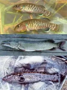 - ↑ Giles, N.; Wright, R. M.; Nord, M. E. (1986). "Cannibalism in pike fry, Esox lucius L.: some experiments with fry densities". Journal of Fish Biology. 29 (1): 107–113. doi:10.1111/j.1095-8649.1986.tb04930.x. ISSN 1095-8649.