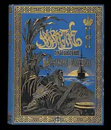 His expertise in Eastern matters and his high social standing led to him being selected to accompany the Tsesarevich Nicholas on his Grand tour to the East. Nicholas took a liking to Esper Ukhtomsky, writing to his sister that "the little Ukhtomskii...is such a jolly fellow".[8] Instead of visiting Europe on his "Grand Tour", Nicholas advised by Ukhtomsky decided to take his "Grand Tour" mostly in Asia.[6] The "Grand Tour" of 1890-1891 began in Vienna, going on to Trieste, the principle port of the Austrian Empire. From Trieste the Imperial party sailed to Greece and from there they travelled to Egypt.[6] From Egypt, they travelled via the Red Sea and the Indian Ocean to India, Ceylon (modern Sri Lanka), Singapore, French Indochina (modern Vietnam, Cambodia and Laos), China, and Japan.[6] From Japan, they sailed to the port city of Vladivostok, the "star of the East", where in March 1891 Nicholas formally opened the construction of the Trans-Siberian Railroad to link Moscow to Vladivostok.[9] From Vladivostok they travelled across Siberia to finally return to St. Petersburg.[6] After returning to Russia in 1891, Ukhtomsky was appointed to the role of court chamberlain, and served on the Siberian Railway Committee. He also began work on his account of the grand tour, entitled Travels in the East of Nicholas II.