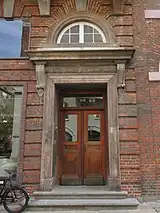 The buildings was probably designed by Andreas Kirkerup. It is constructed in red brick with plinth, cornices and window frames in Bornholmian granite. The building is seven bays wide and has a median risalit. The first floor features three-bay balcony supported by corbels. One of the corbels features a relief of an anchor. The reliefs on the three other corbels are slurred. The lowest floor and high cellar was merged into a new ground floor with mezzanine.[3]