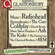 Essential Glastonbury is a promotional cover CD given away with issue 216 of Q magazine. The CD was released in cooperation with Greenpeace with the result that the cover was printed on recycled paper. The following excerpt is the introduction from the inside of the cover sleeve.