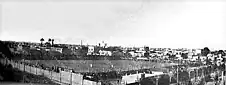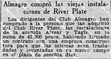 The club then played in Parque Chas, in a land on Gándara and Londres streets that belonged to the Chas family. That venue was one of the stadiums with most capacity in the city, and apart from football matches, other events were held there. Almagro remained there until 1937, when the club had to leave the lands after the Municipality evicted them to open a street.[3] After that, the club settled on Fraga and Estomba streets in Villa Ortúzar, where it played from 1939 to 1949. The club acquired the former grandstands of Estadio Alvear y Tagle to C.A. River Plate for m$n42,000.[4]