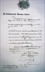 Following the USS Lexington raid of 1831, Luis Vernet refused to continue as military and civil commander in the Falkland Islands.[2] President Juan Rosas conferred upon Mestivier the appointment of interim military and civil commander on 10 September 1832. This was subsequently confirmed by being gazetted in the British and Argentine Packet News on 15 September 1832.[1] The announcement provoked a protest from the British minister in Buenos Aires, Henry Fox, on 28 September 1832,[1] which like the protests of 1829 against Vernet's appointment,[3][4] went unanswered apart from a brief acknowledgement. This, combined with the Lexington raid of 1831 prompted the British to send a naval patrol to re-assert sovereignty over the Falkland Islands.[5]