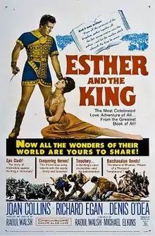 Esther and the King (Italian: Ester e il re) is a 1960 American-Italian religious epic film produced and directed by Raoul Walsh and starring Joan Collins as Esther, Richard Egan as Ahasuerus, and Denis O'Dea as Mordecai. Walsh and Michael Elkins wrote the screenplay, which was based on the Book of Esther of the Hebrew Bible and the Old Testament. It recounts the origin of the Jewish celebration of Purim.