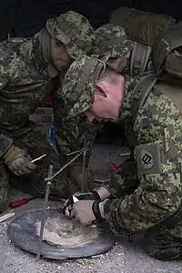 Estonian Troops in Afghanistan clearing IEDs- Estonian Iraqi Contingent (2003-2008), Joint military force of the Estonian Defence Forces deployed in Iraq during the Iraq War mostly in the Baghdad Governorate in the Sab-al-Bori area