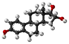 Estriol, also known as 16α-hydroxyestradiol or as estra-1,3,5(10)-triene-3,16α,17β-triol, is a naturally occurring estrane steroid with double bonds between the C1 and C2, C3 and C4, and C5 and C10 positions and hydroxyl groups at the C3, C16α, and C17β positions.[26][27] The name estriol and the abbreviation E3 were derived from the chemical terms estrin (estra-1,3,5(10)-triene) and triol (three hydroxyl groups).