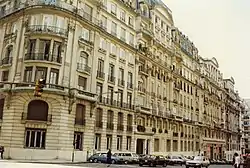 Inaugurated in 1929, the eight-story Estrugamou Building was one of the few city landmarks to receive no architectural awards at the time of its completion. It was graced by an oversized sidewalk and extensive garden along its southern façade originally, though the civic-minded Alejandro Estrugamou donated this section to the city (which sought to widen Juncal Street) shortly before his death in 1937.[4] The Estrugamou building has been described as an 'oasis of glamour, diplomacy and politics' by virtue of its notable residents and associated personalities.[5]