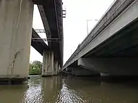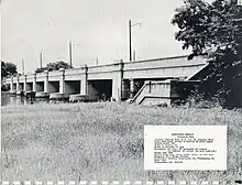 Work on a replacement to that bridge began in January 1933 and cost $450,000 at the time. The 8-span bridge made of steel beams encased in concrete on simple spans opened on December 18, 1934. It was 586 feet long, 106 feet wide with 8' sidewalks on each side.[13][21] In 1975, the west bound deck was replaced.[22]